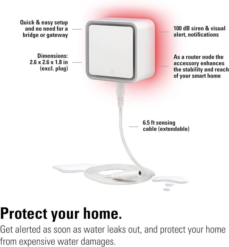 Eve Water Guard – Smart Home Water Leak Detector, 6.5 ft Sensing Cable, 100 dB Siren, (Apple HomeKit), App Notifications, Bluetooth, Thread